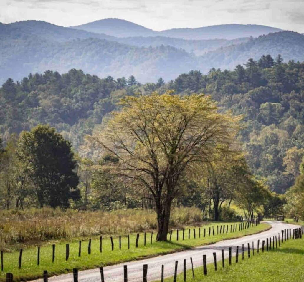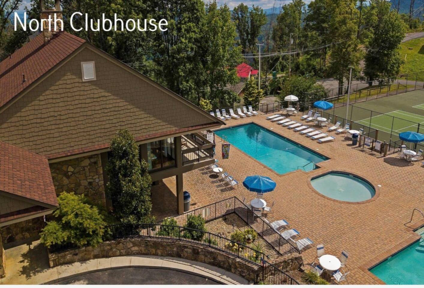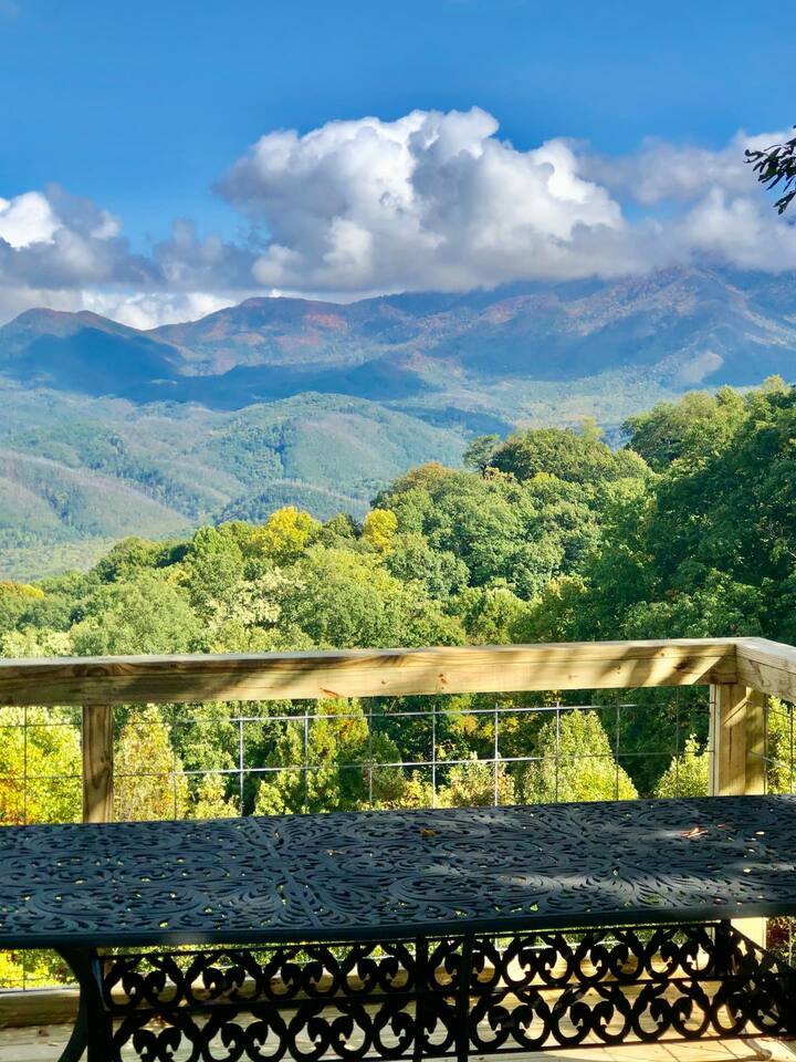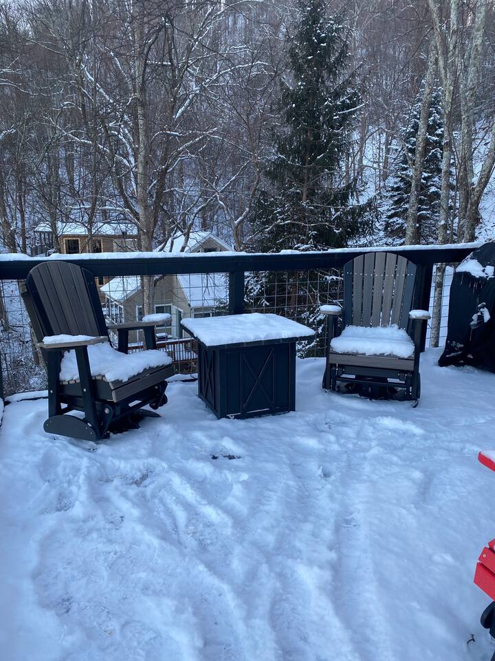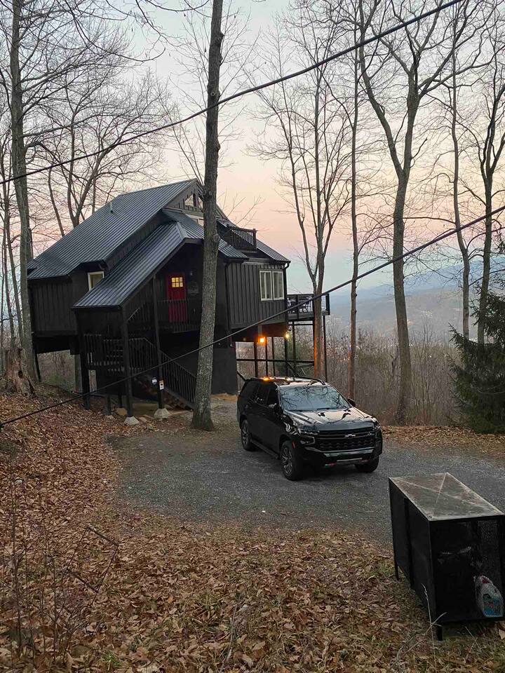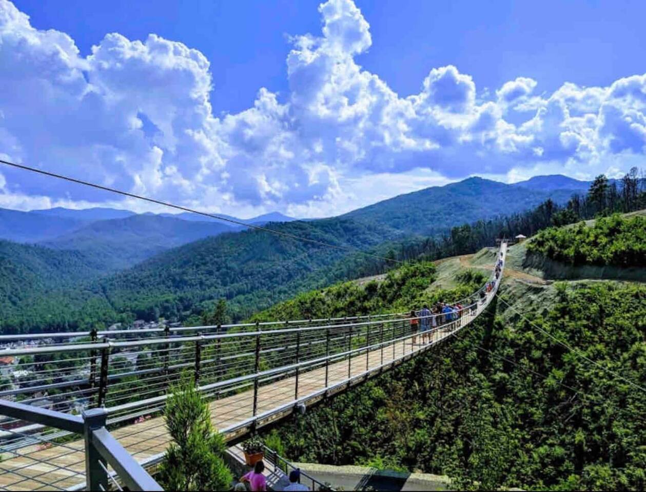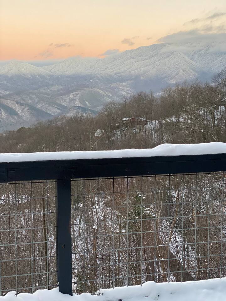 The space Peaceful Wooded Surrounding | Panoramic Mountain Views | Downtown Gatlinburg/Tram Views | Keyless Entry | Outdoor Grill | WIFI | Cable | Chalet Village Pool Access during summer months| Hot Tub Tucked away on a quiet street with only one cabin to your right. The main level features a spacious living room with luxurious leather couches, large windows with mountain views, electric fireplace surrounded by natural stone/authentic log mantle, and 55” large flat screen TV. Fully equipped kitchen and dining area just a few steps away, with dining table on the deck for those wanting to eat outside. First bedroom has a king bed, flat screen TV and connects to the hall bath. Second bedroom has king bed and private bath with direct access to the deck. The beautiful spiral staircase connects the main level to the upper deck where you will find board games and flat screen TV, and a dedicated work area. When staying at our lodge, you will get access to all 3 pools located in Chalet Village during the summer months. NON SMOKING! NO PETS! Parking for two vehicles with split driveway. *** Please note that our cabin is located in The Great Smokey Mountain area and therefore we are surrounded by wild life. Bear sightings in the area are normal, particularly in the Spring and Fall. Please familiarize yourselves with the do's and don'ts when experiencing a bear sighting. Do not leave children unattended. ***