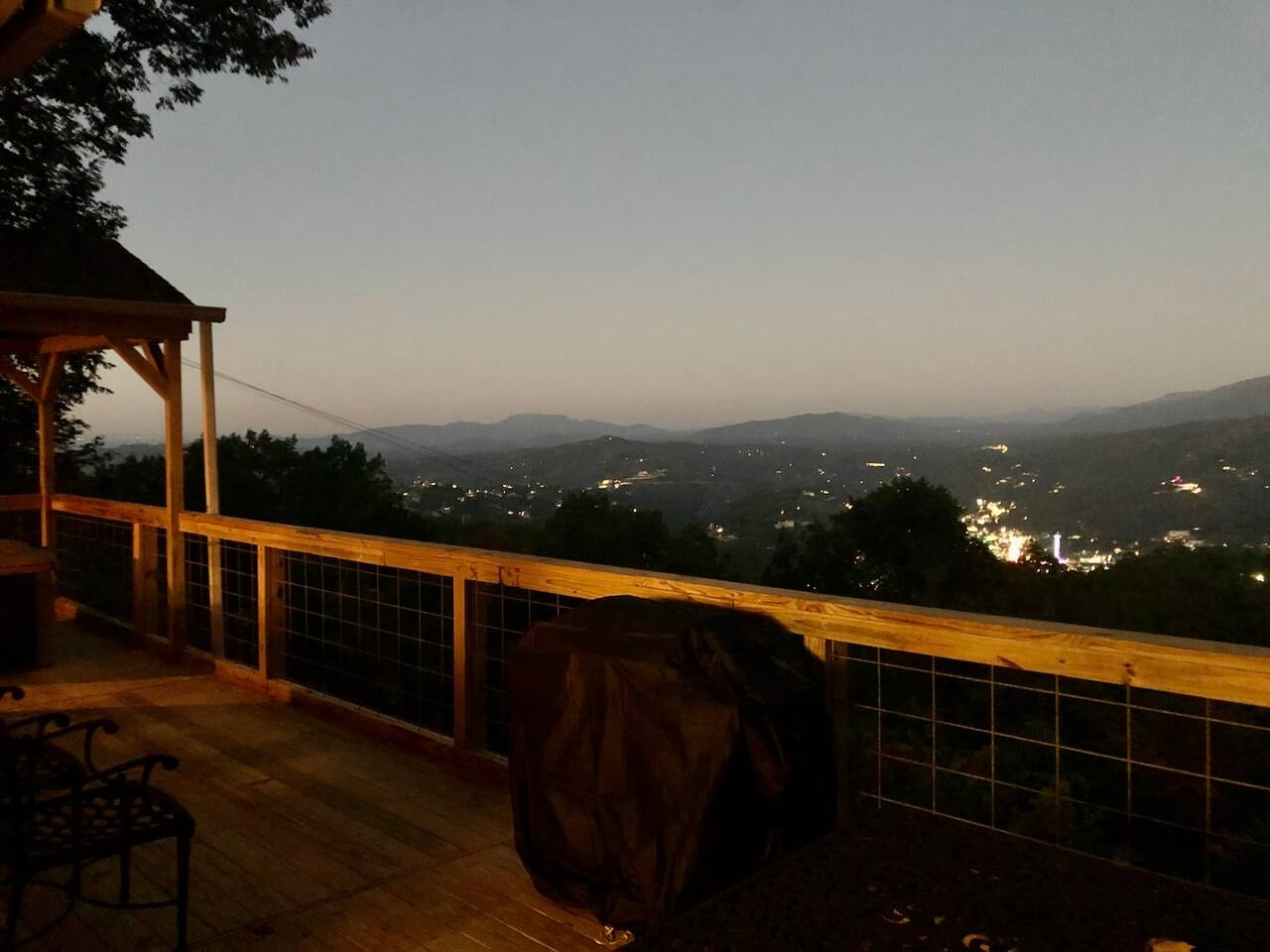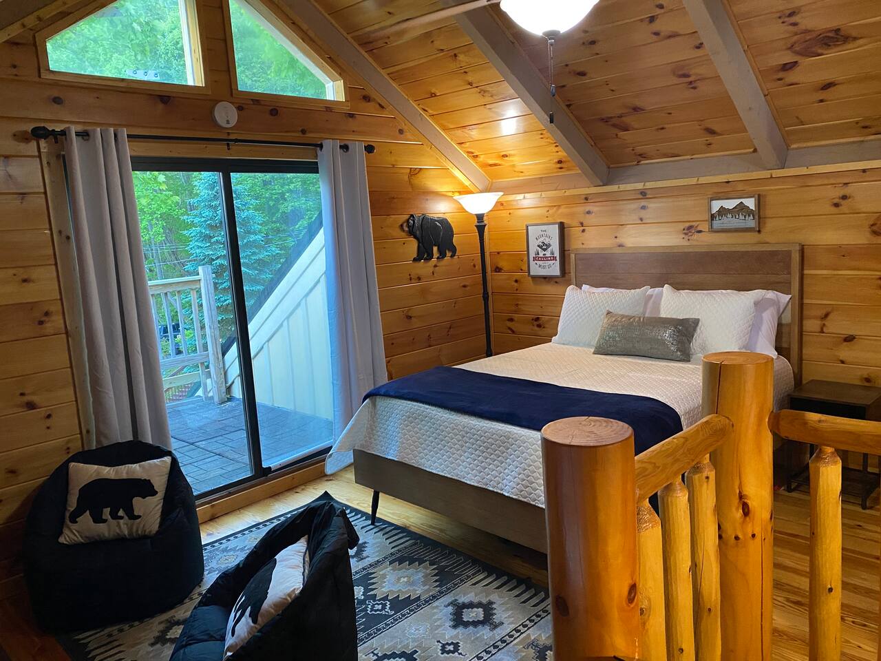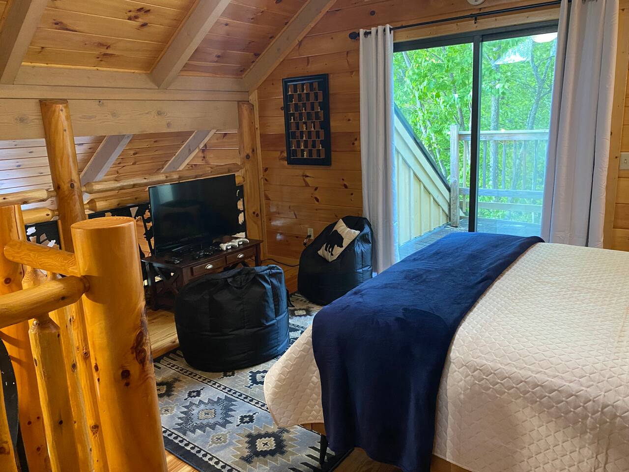 The chalet is a cozy 2 bedroom cabin with a loft with panoramic views of the national park and downtown. You can enjoy the views from the balcony, dining room and kitchen, living room and hot tub. From the outside, the chalet resembles a tree house. * Chalet Village is located in a WILD FIRE prone area. Please be FIRE WISE and be careful when using the grill and firepit. Familiarize yourself with the current fire conditions in the area during your visit. You can find more information at gatlinburgtn .gov/page/firewise. *