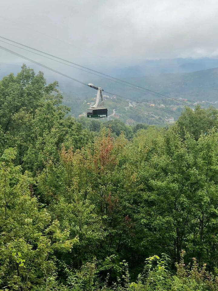 "Moondancer Chalet " which is located in Chalet Village near Ober Gatlinburg features unbelievable views and a renovated interior! The chalet is located only 2.6 miles to Downtown Gatlinburg and 22 minutes to Dollywood. You will enjoy direct views of Mt Le Conte, Downtown Gatlinburg, and the Ober Tram traveling up and down Ski Mountain! The lodge sleeps 6 and includes a full kitchen, 2 bedrooms with king beds, and a loft with a queen bed. The chalet is perfect for couples or small families.
