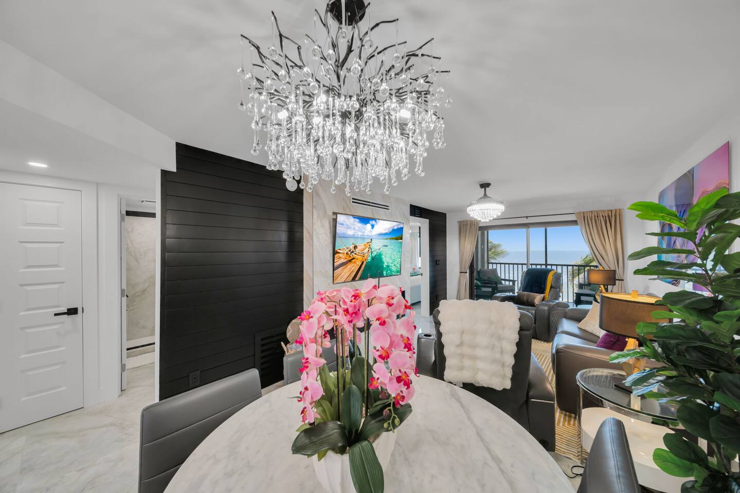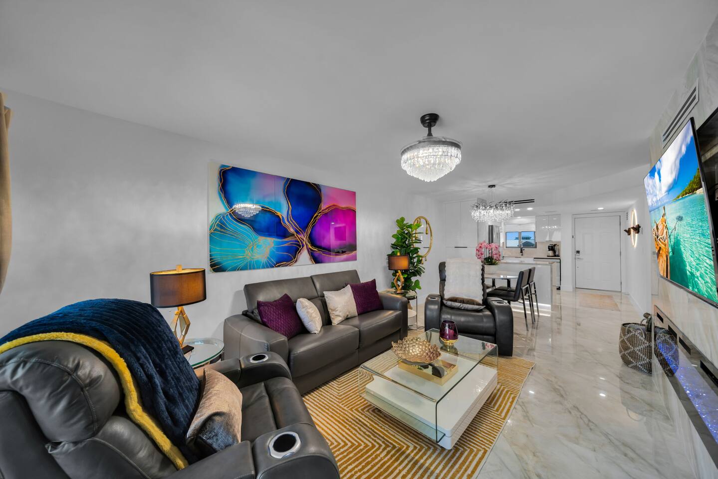 STR Registration # 21.0148 Property has assigned parking under the building. Solmate is a sister property of Sea La Vie- #1665309 (Unit 408) and Luna Sea #1548440 (Unit 204) which are also located at Seaside Resort in mid-island Fort Myers Beach. Please check out properties, MoonDancer Chalet and SunDancer Chalet in Chalet Village -Gatlinburg, TN. Solmate is a well-appointed, breathtaking beachfront condo located mid-island on beautiful Fort Myers Beach. This 2 bedrooms, 2 bathrooms third floor unit has been remodeled in February 2025 and is the perfect place for your family’s next vacation. The master bedroom features a king size bed with built in closet, nightstands, and 55" - 4K Smart HDTV. The second bedroom has queen size bed, built in closet, nightstands, and 65" - 4K Smart HDTV. The gourmet kitchen has gorgeous granite counter tops, dishwasher, refrigerator, ice maker, stove/oven, air fryer, instant pot, Keurig duo (pod and carafe) coffeemaker, and microwave. The living room is tastefully decorated with a full-size leather sofa sleeper, 2 leather recliners, 70" - 4K Smart HDTV, coffee and end tables, lamps, fireplace insert for those chilly winter nights. Dining room table sits 4. The lanai accommodates a comfortable patio set overlooking dramatic views of the Gulf of America. Solmate is a smoke free zone. Sorry, no pets allowed. Must be at least 23 years old to book this unit. One vehicle per unit is allowed. Sorry, no trailers, boats, RV, or motor homes are allowed on the property. Condo amenities include heated pool, gas grill, on-site laundry facilities, and beach chairs. Solmate is located directly across from Publix Supermarket making it very convenient to get your groceries. In the same plaza as Publix you will find Snook Bight Marina and Junkanoo. Solmate is situated 2.4 miles (10 minutes by car) from Times Square where you can find live entertainment, shops, restaurants, bars, and much more. Fort Myers Beach offers many outdoor activities such as parasailing, jet skiing, bike rentals, golf course, charter fishing, boat rentals, and miniature golf. Places to explore: Fort Myers Beach is nature lover’s paradise. With over 400 varieties of seashells, you can spend hours strolling up and down the beach hunting for the perfect souvenir. If you really want to feel one with nature Lovers Key State Park made the 10 Most Romantic Places in Florida according to Coastal Living and Travelers Magazine and it is short 3.8 mile drive from Solmate. If seclusion is your thing, then Sanibel and Captiva Islands are short drive away (14.2 miles). If you like gators and birds, the Bird Rookery Swamp is a great place to visit and only 33.3 miles away. Nature is not for everyone and if you prefer to get a little history during your vacation I recommend checking out the Edison Ford Museum in Fort Myers situated 16.5 miles from Solmate college sports, don’t forget to check out home games at Florida Gulf Coast University only 20.2 miles away.